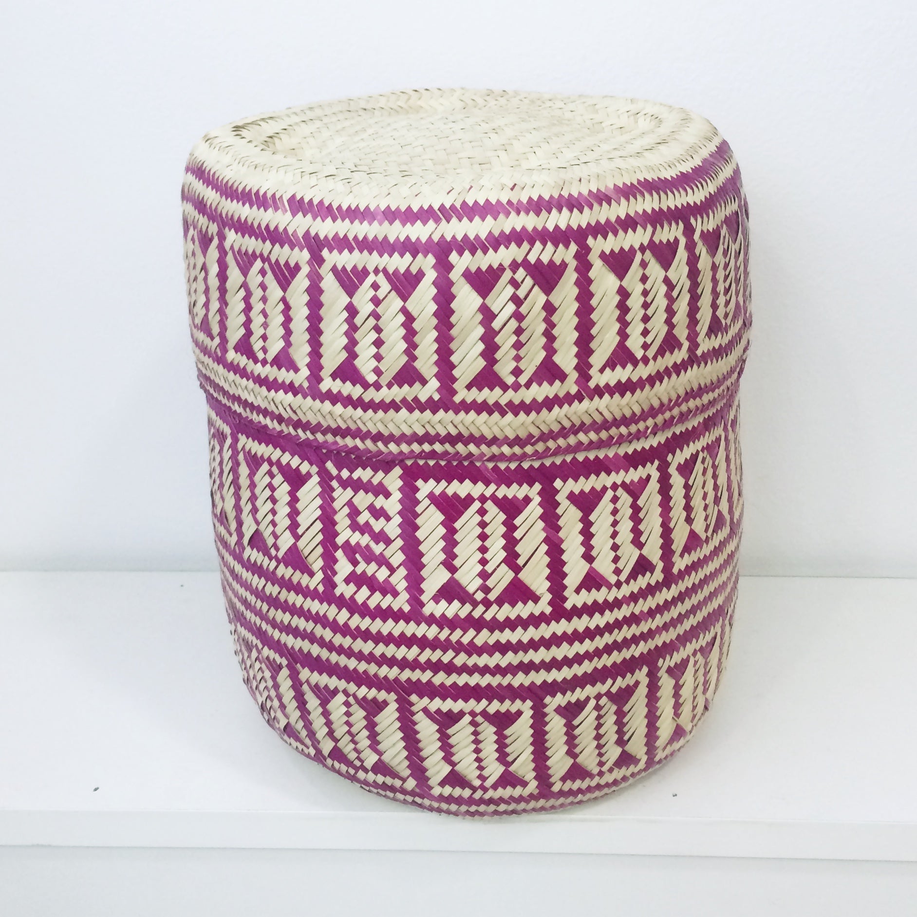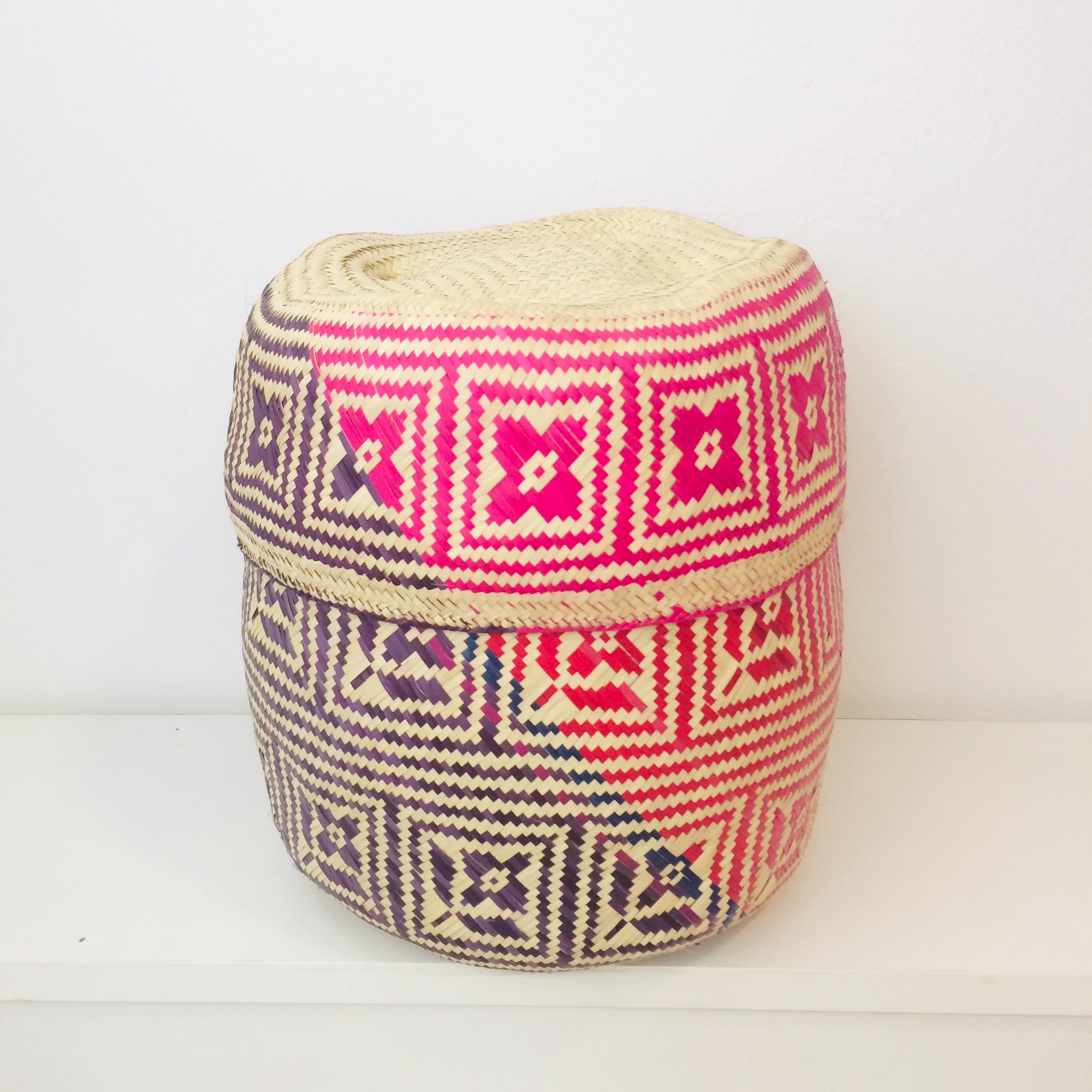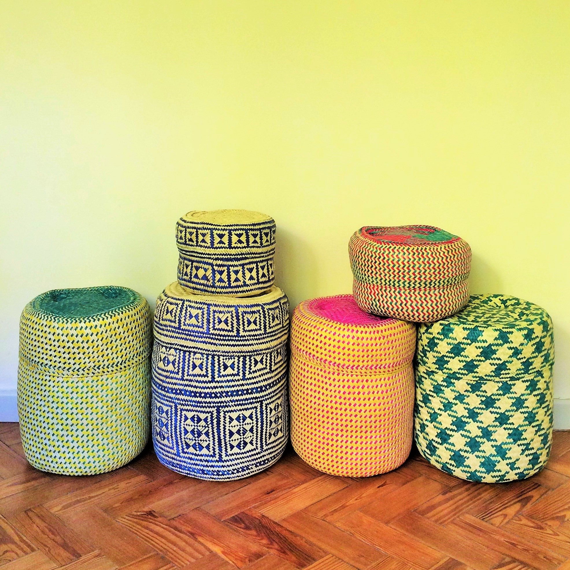 Cestos de palma hechos a mano en México. Vienen en diferentes combinaciones de colores y en varias medidas.