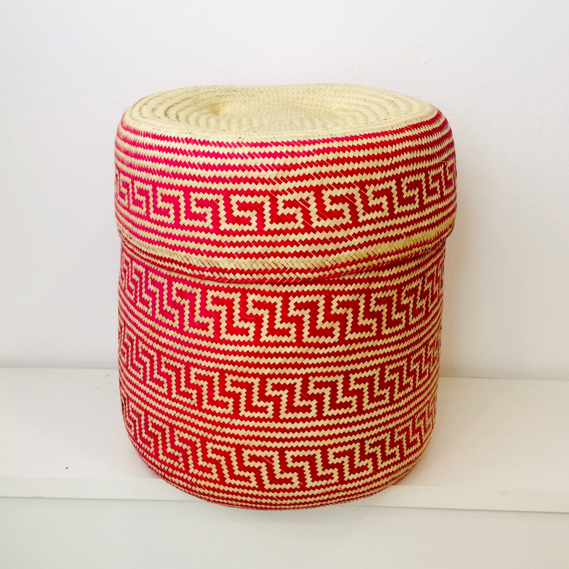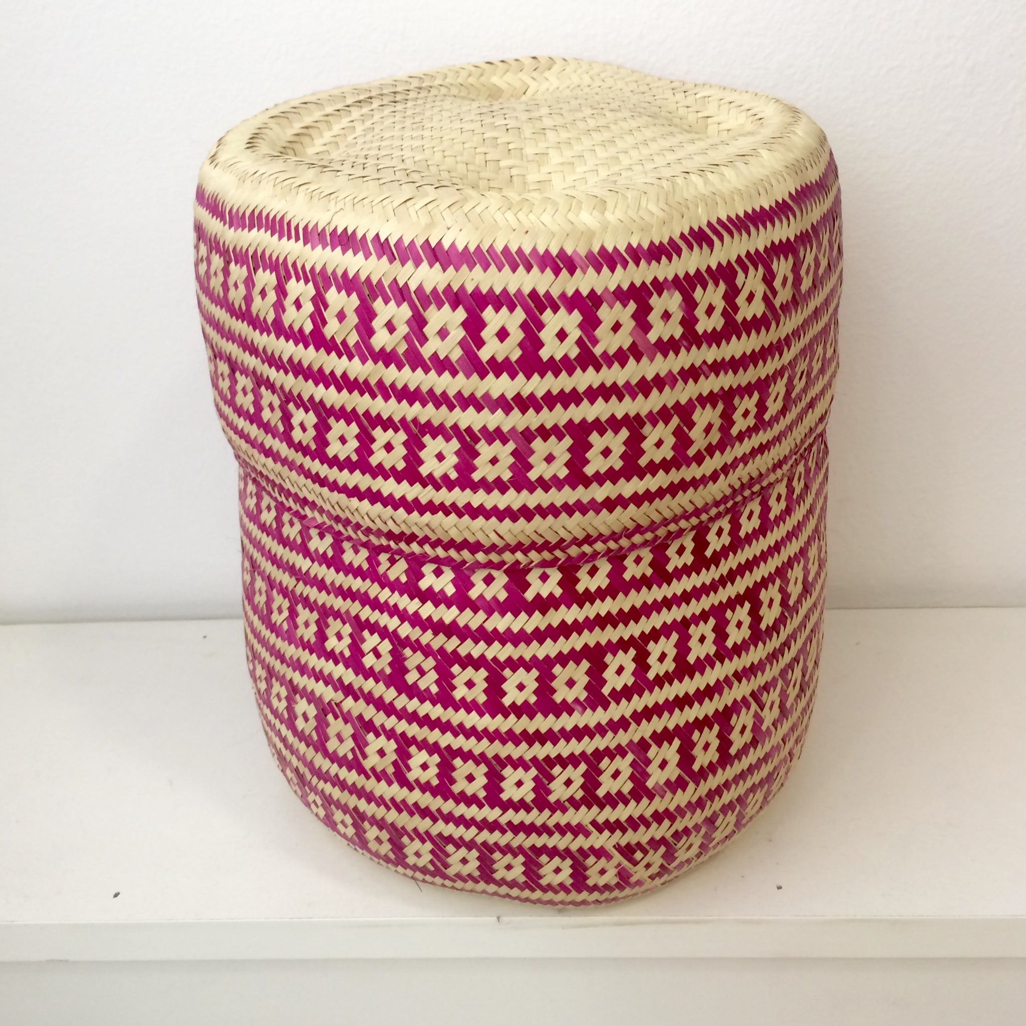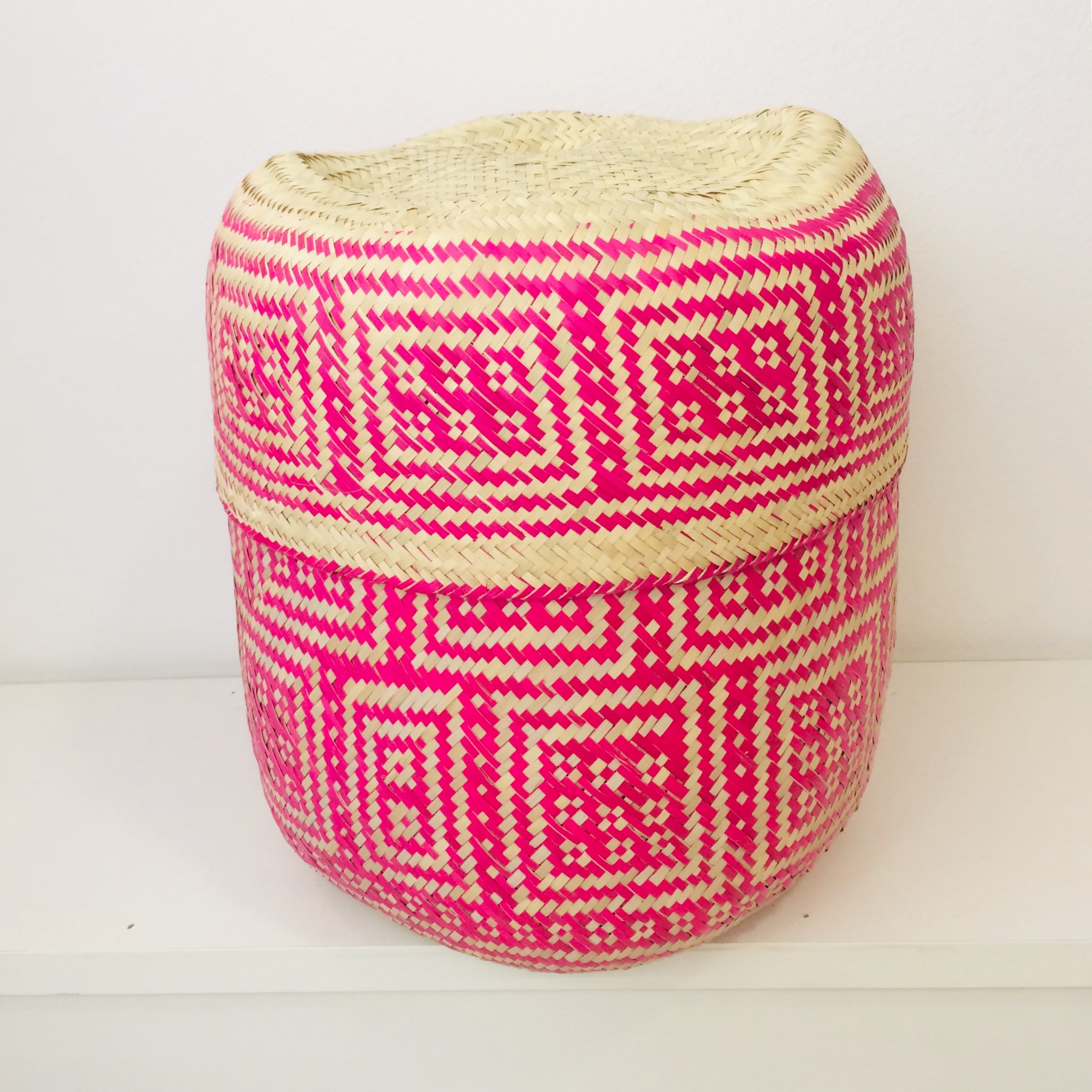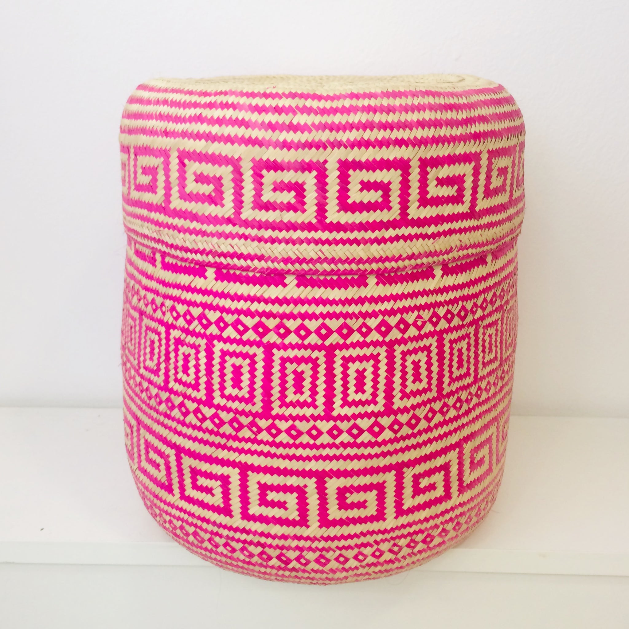 Cestos de palma hechos a mano en México. Vienen en diferentes combinaciones de colores y en varias medidas.