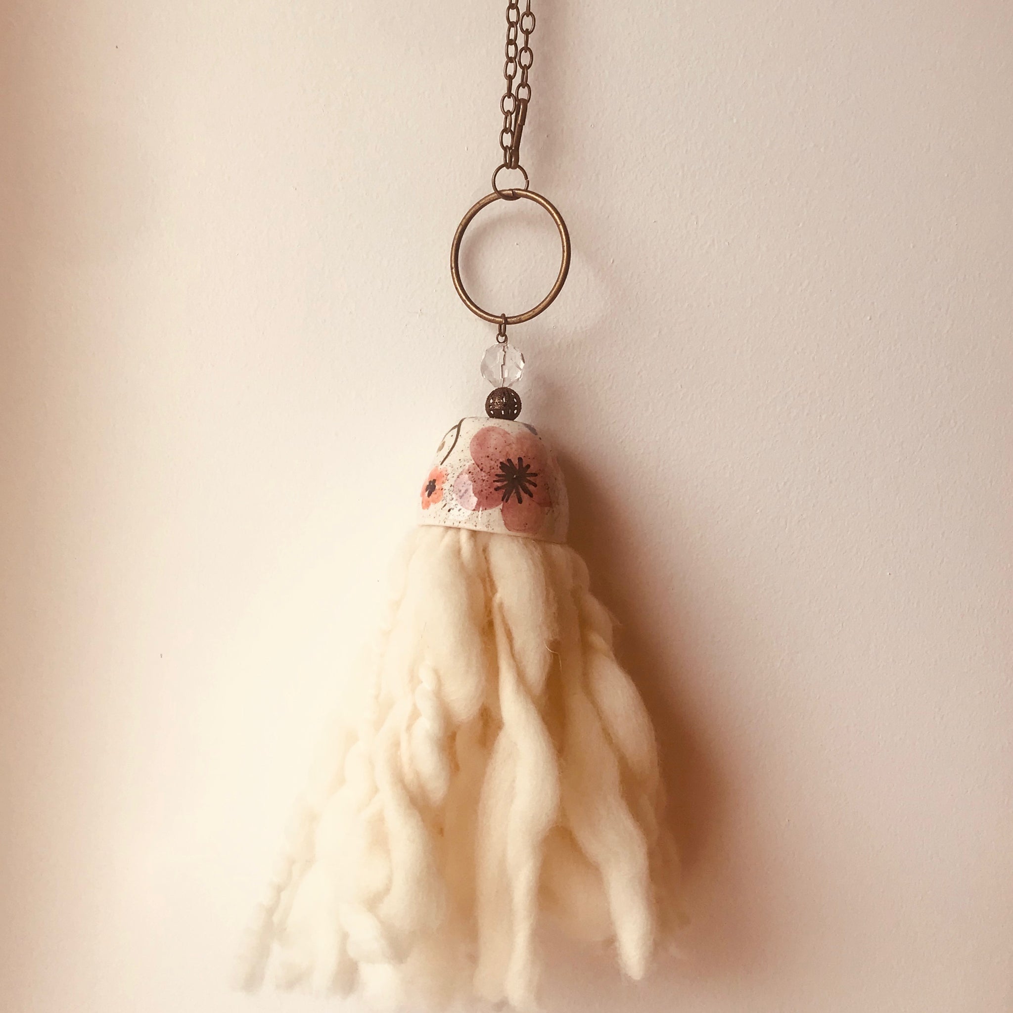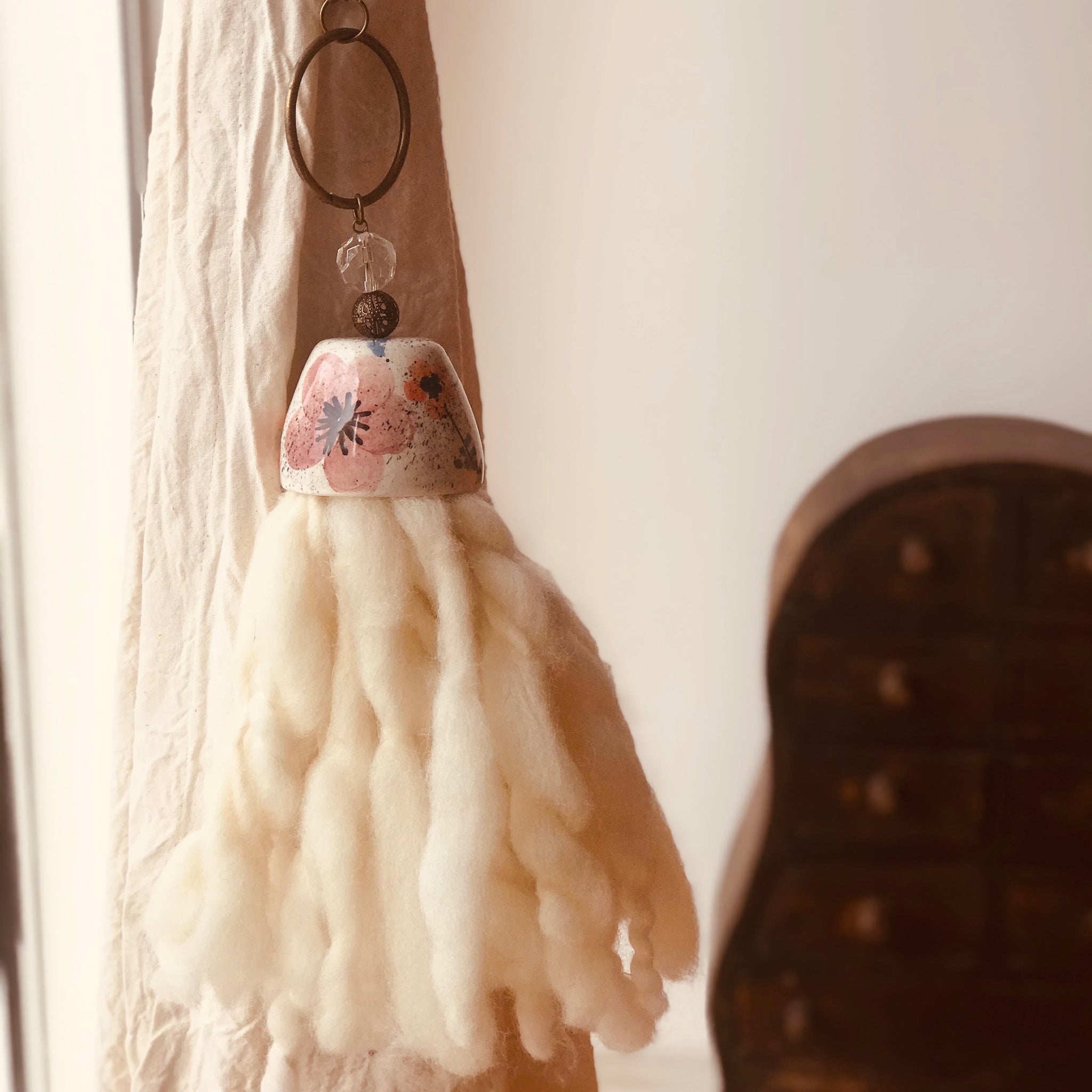 Cortinero de lana y cerámica campanita