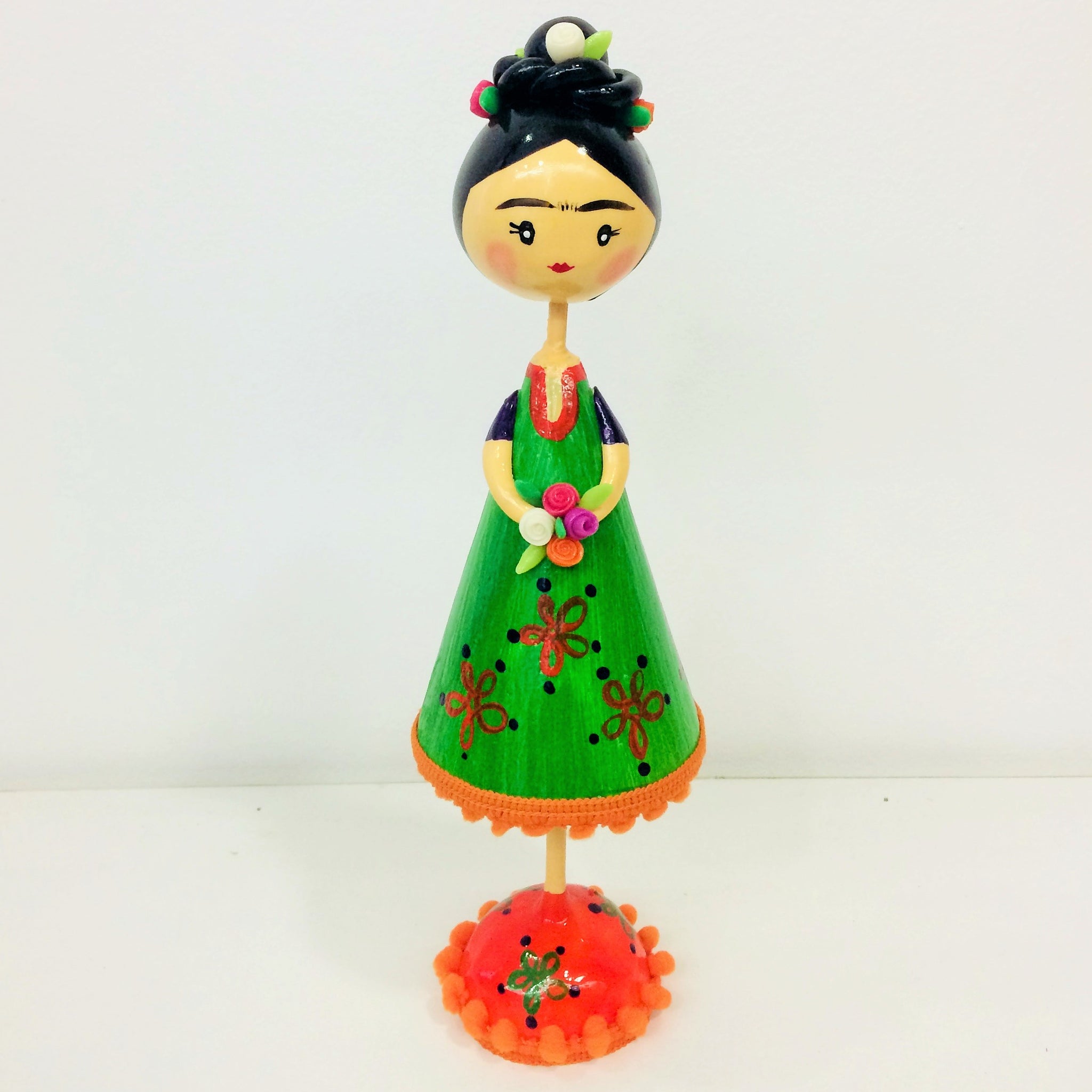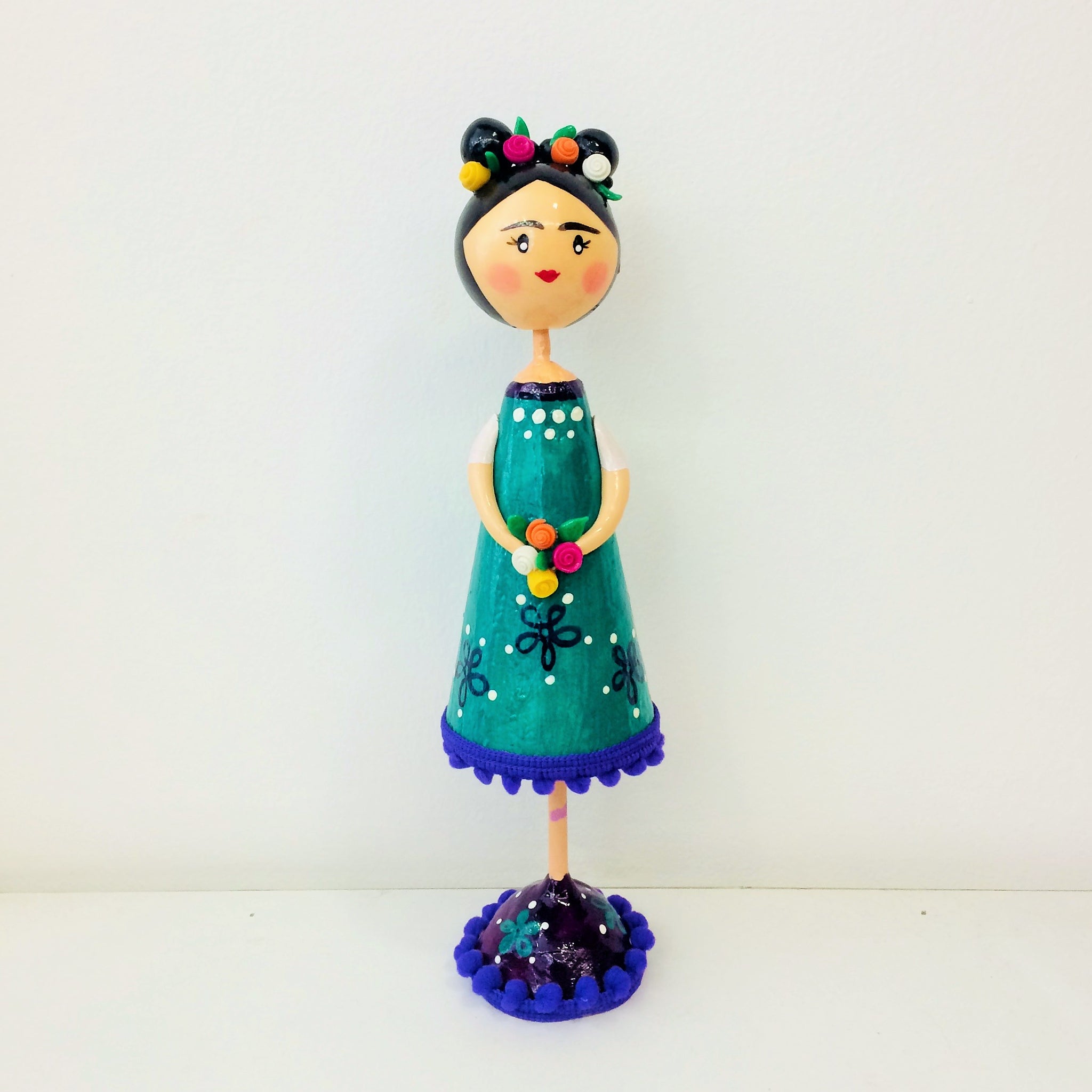 Figura decorativa de Frida Kahlo. Alto: 25 cm.