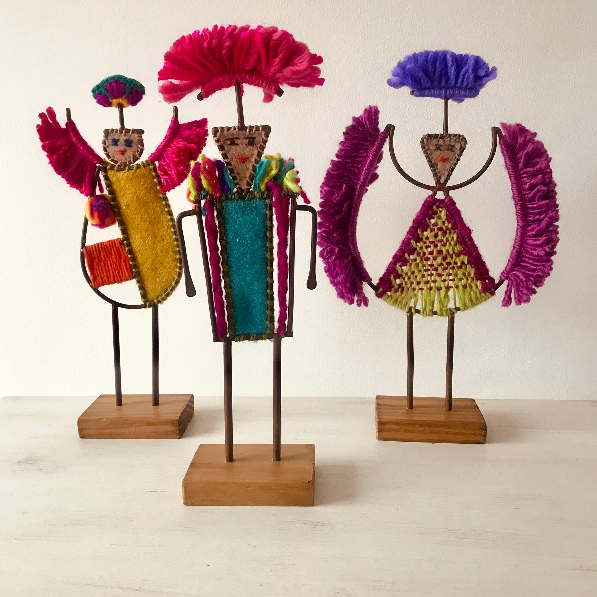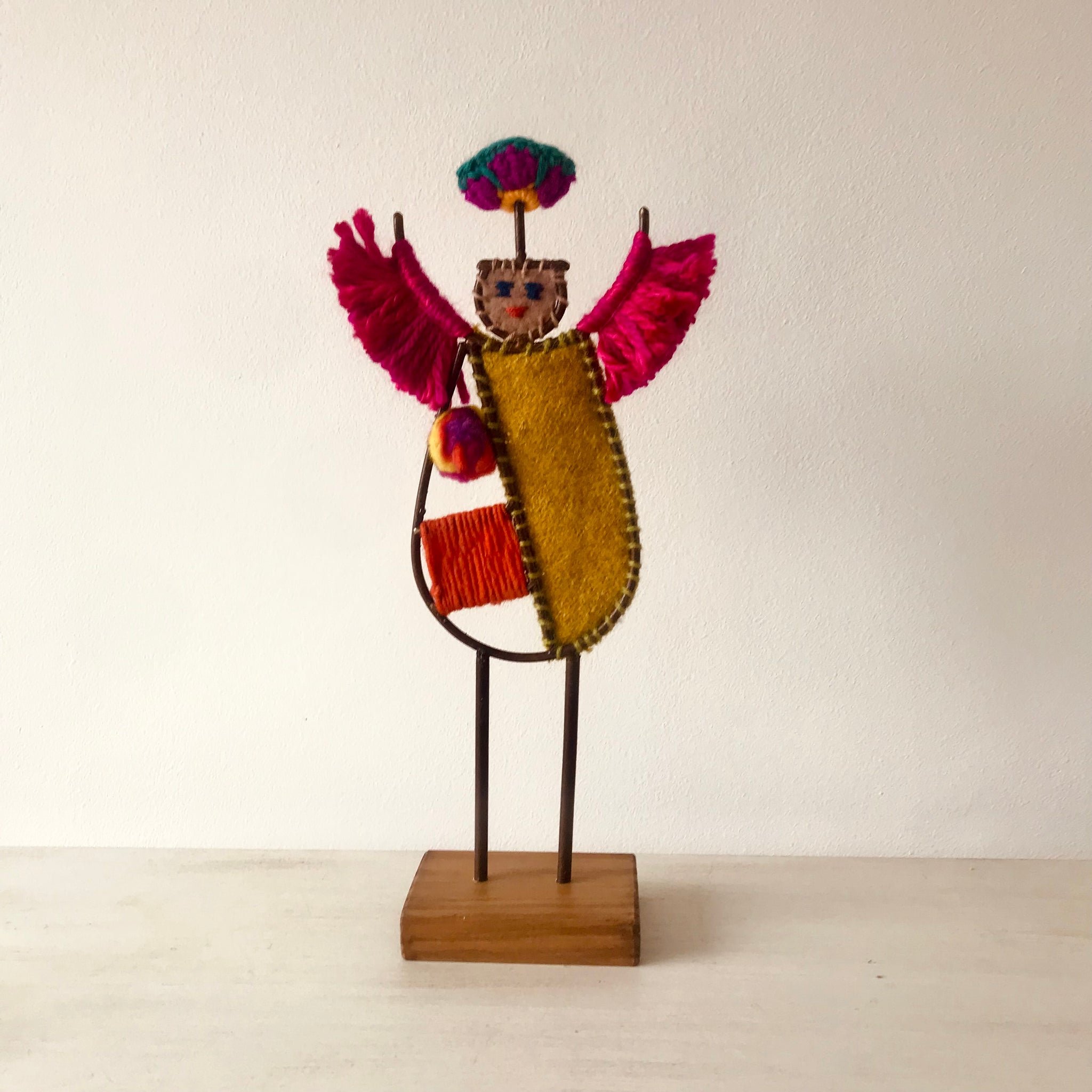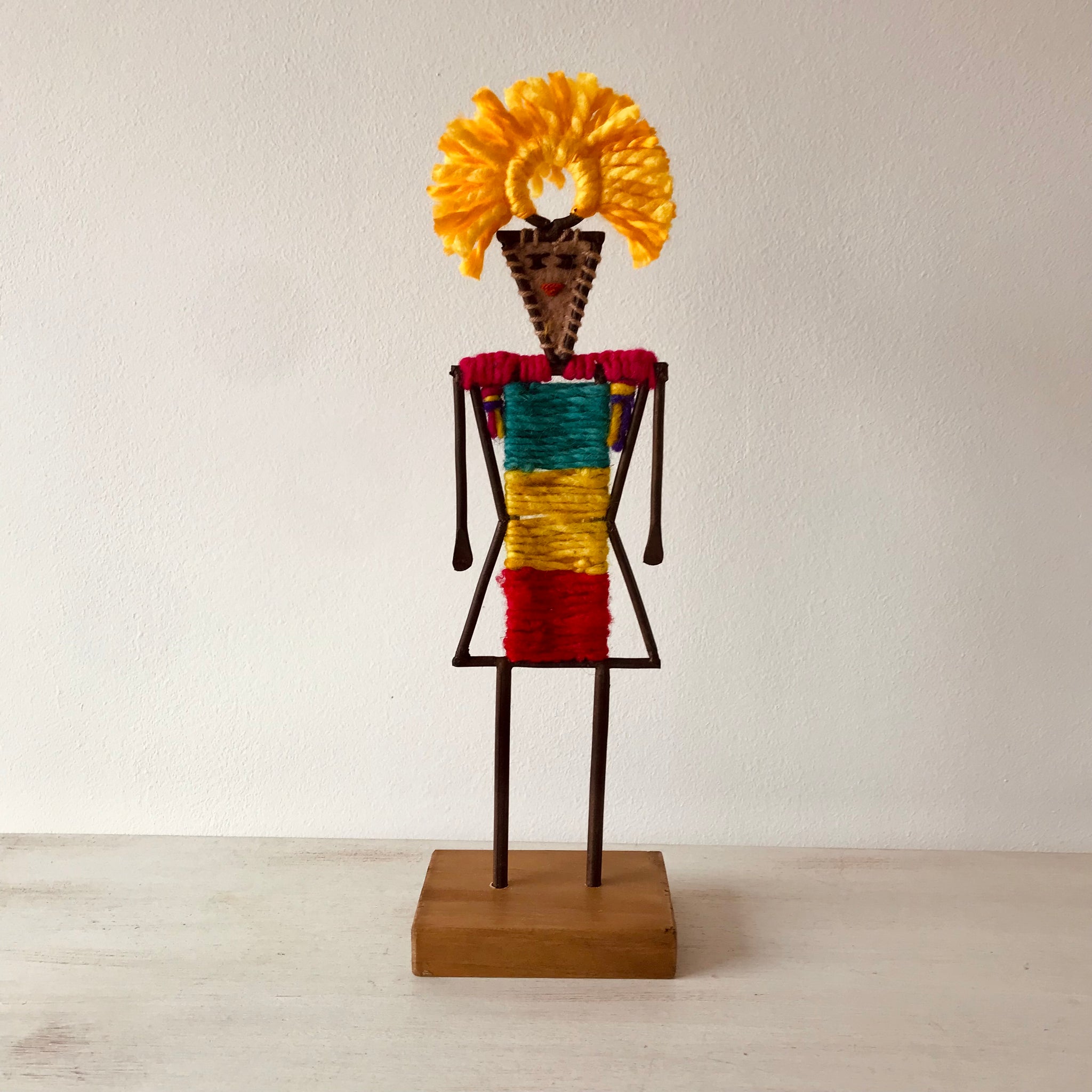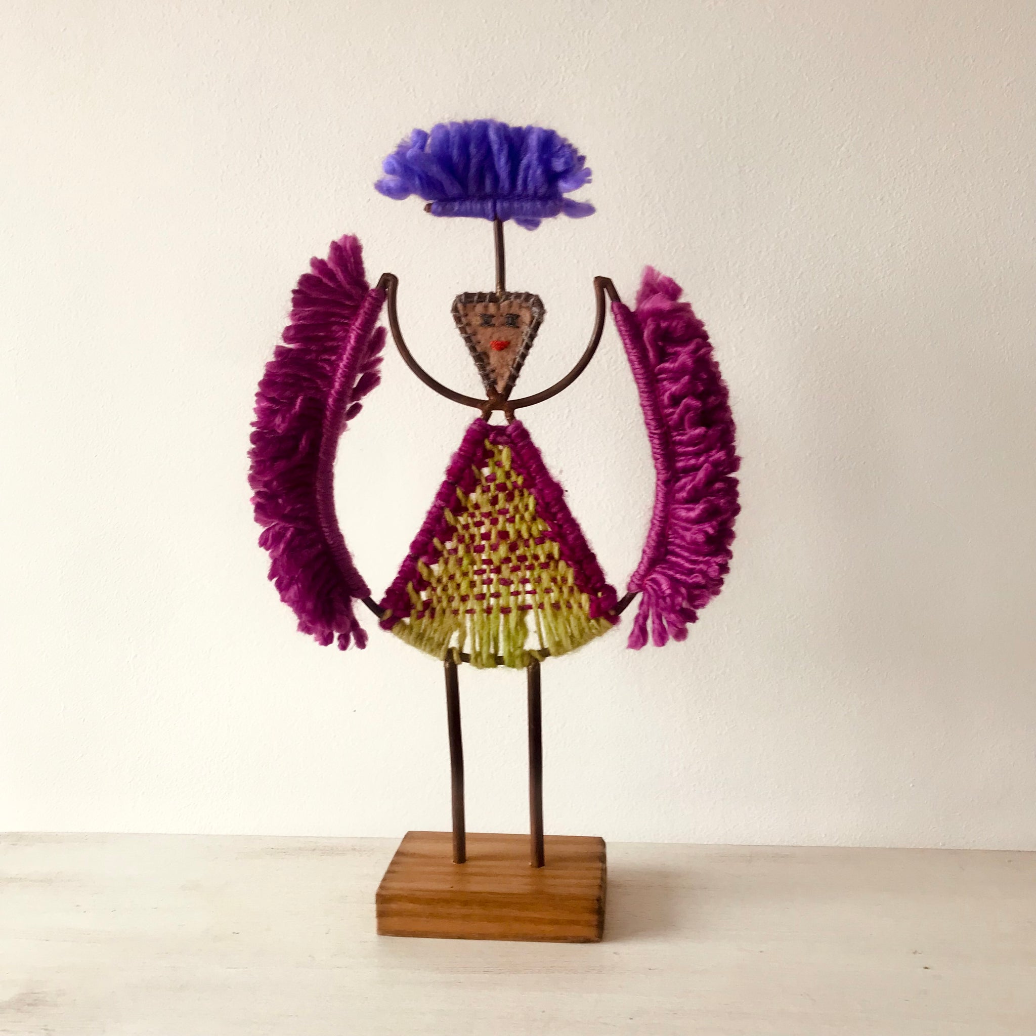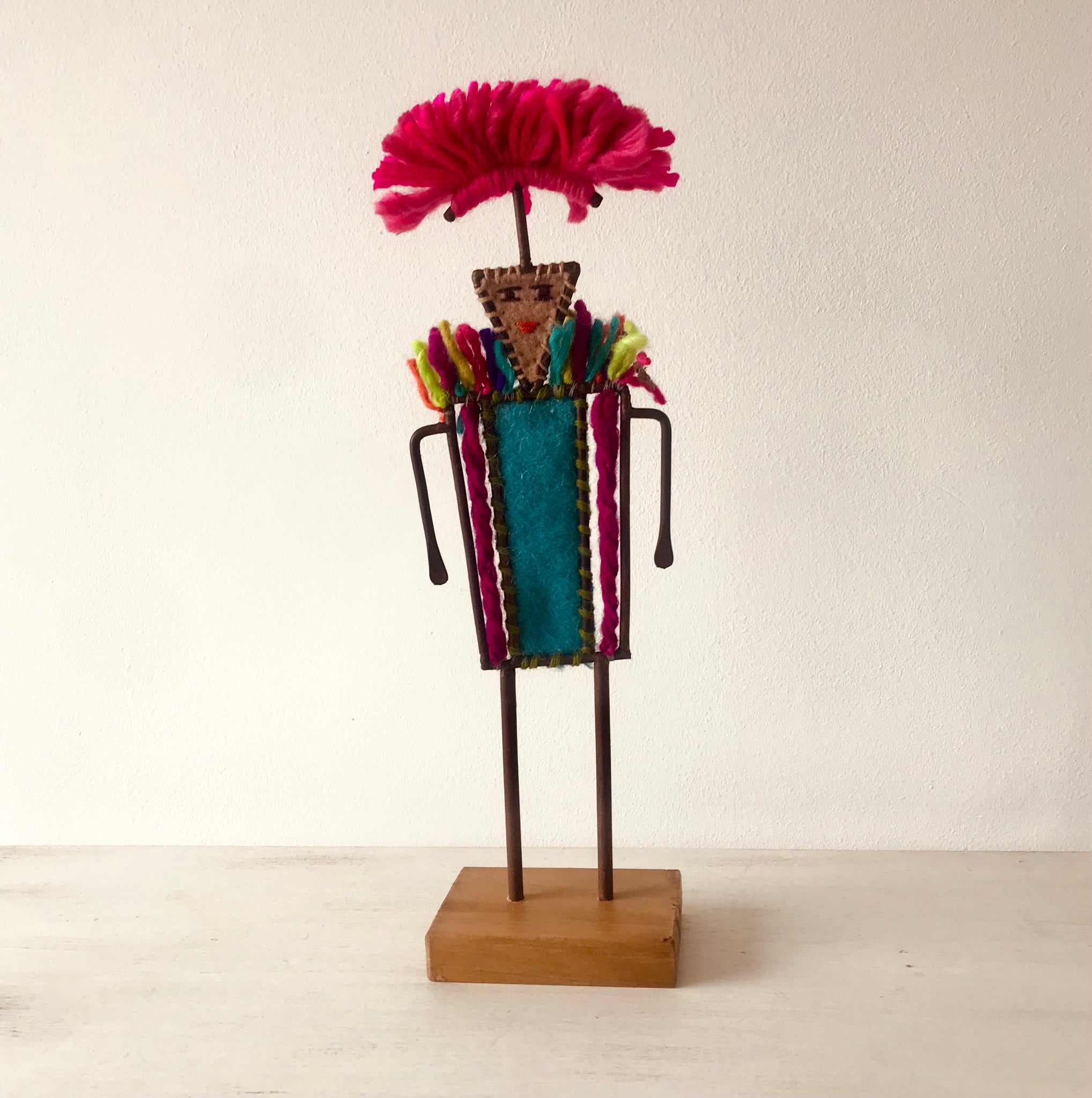 Escultura en hierro, madera y lana realizada a mano. Altura 32 cm.