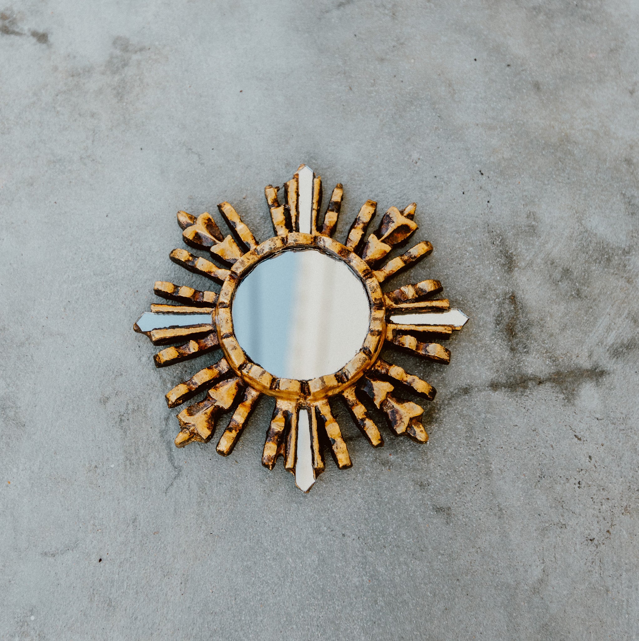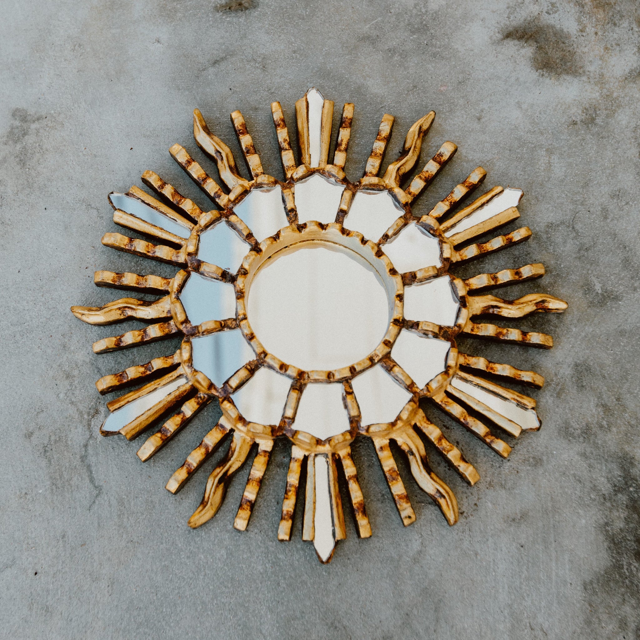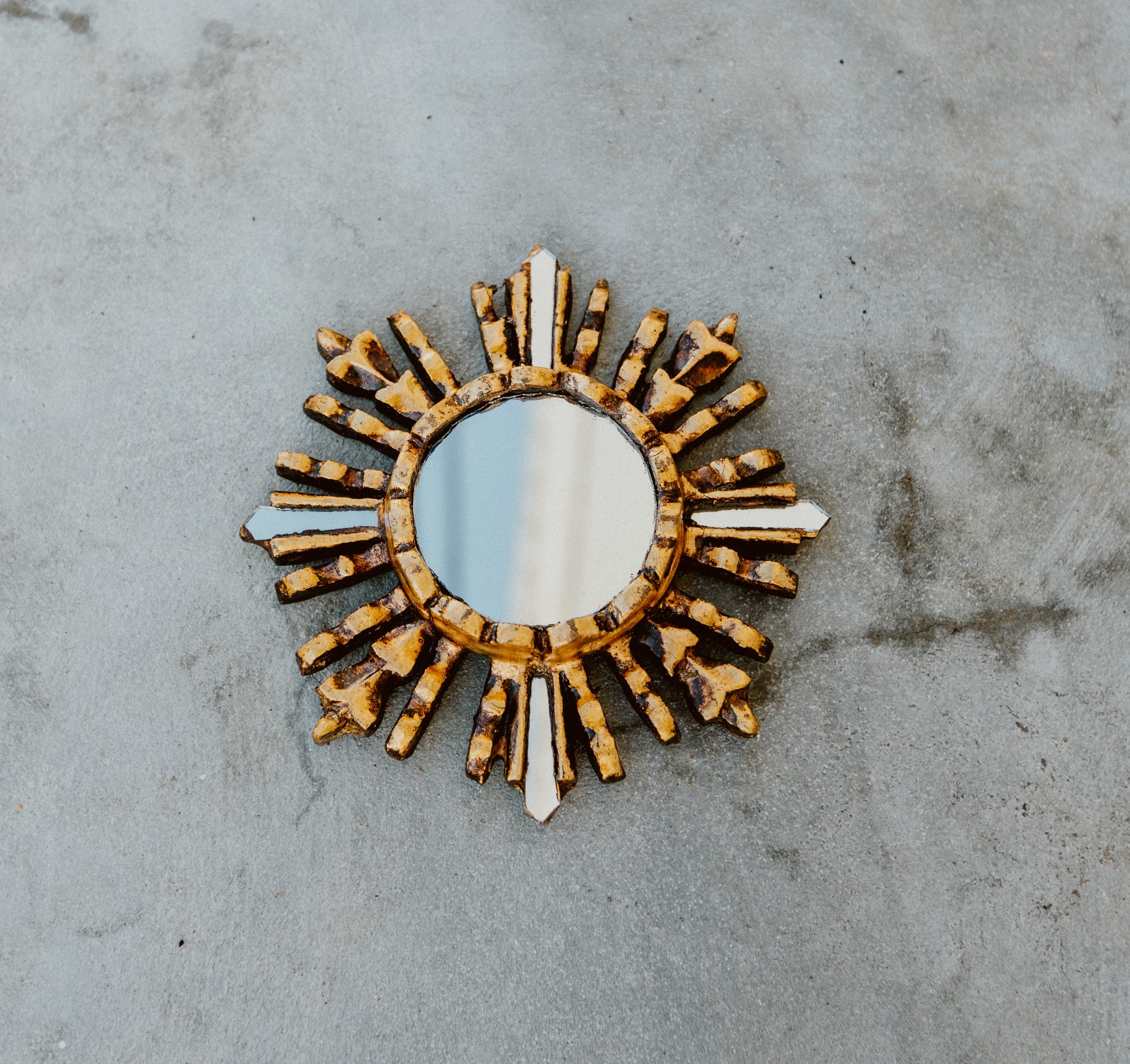 Espejos dorados realizados en madera tallada a mano y pintados con la técnica dorado a la hoja.