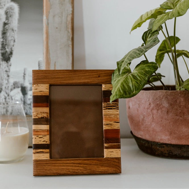 Portarretratos realizados con varios tipos de madera: cedro, nogal, cardón, algarrobo.