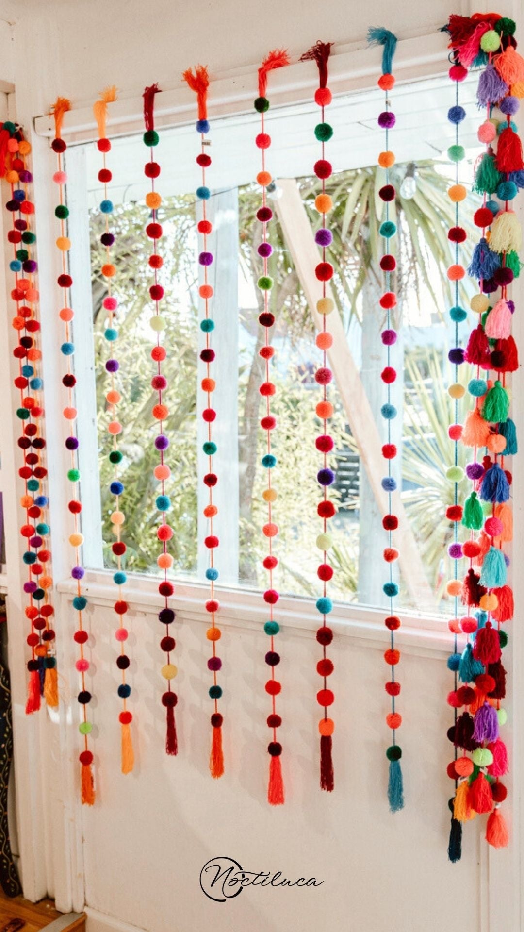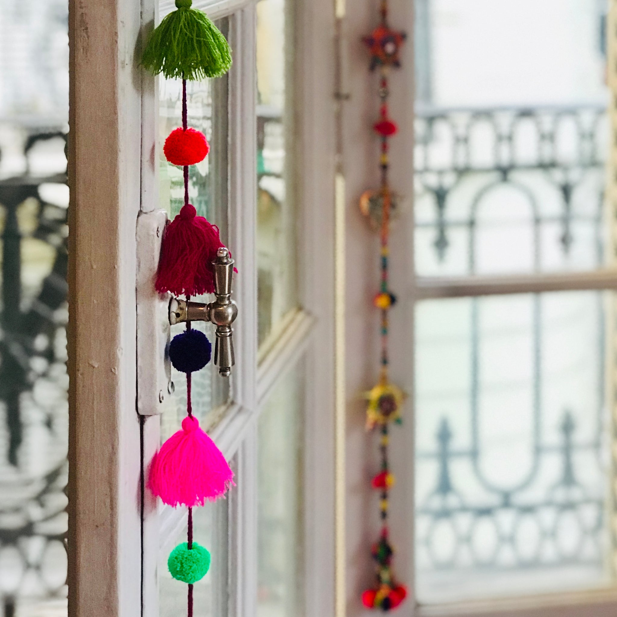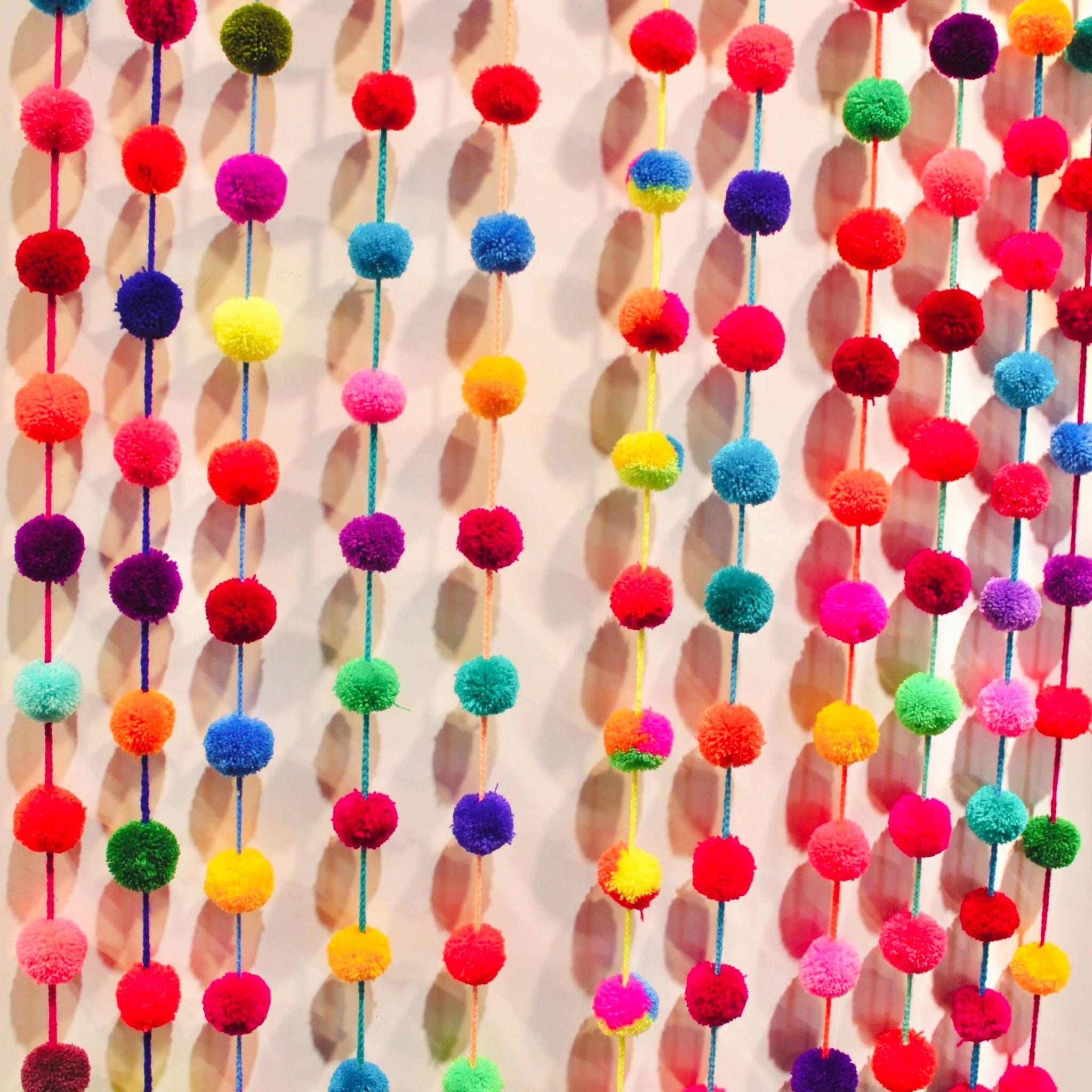 Tiras decorativas mexicanas artesanales, varios diseños: pompones multicolores, pompones y flecos, flecos y caramelos. Largo: 1,50 m.